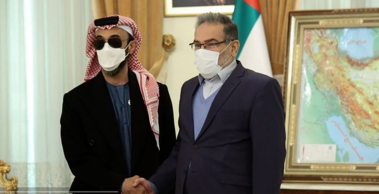 چنین رویکرد و اظهارنظری سبب اعلام مواضع متقابل مثبت از سوی مقامات جمهوری اسلامی ایران شد. رئیس جمهور ضمن انتقاد از رفتار قدرتهای بزرگ در منطقه، از اهداف و امنیت مشترک کشورهای مسلمان منطقه سخن گفت. دریابان شمخانی نیز ضمن نام بردن از ظرفیتهای بالقوه همکاری میان همسایگان منطقهای، سفر همتای اماراتی خود به ایران را سرآغاز دور جدیدی از روابط فیمابین دو کشور قلمداد کرد.